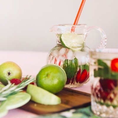 Lemon and ginger, cucumber and mint, or ACV-infused water are great choices for reducing bloating and supporting fat loss.